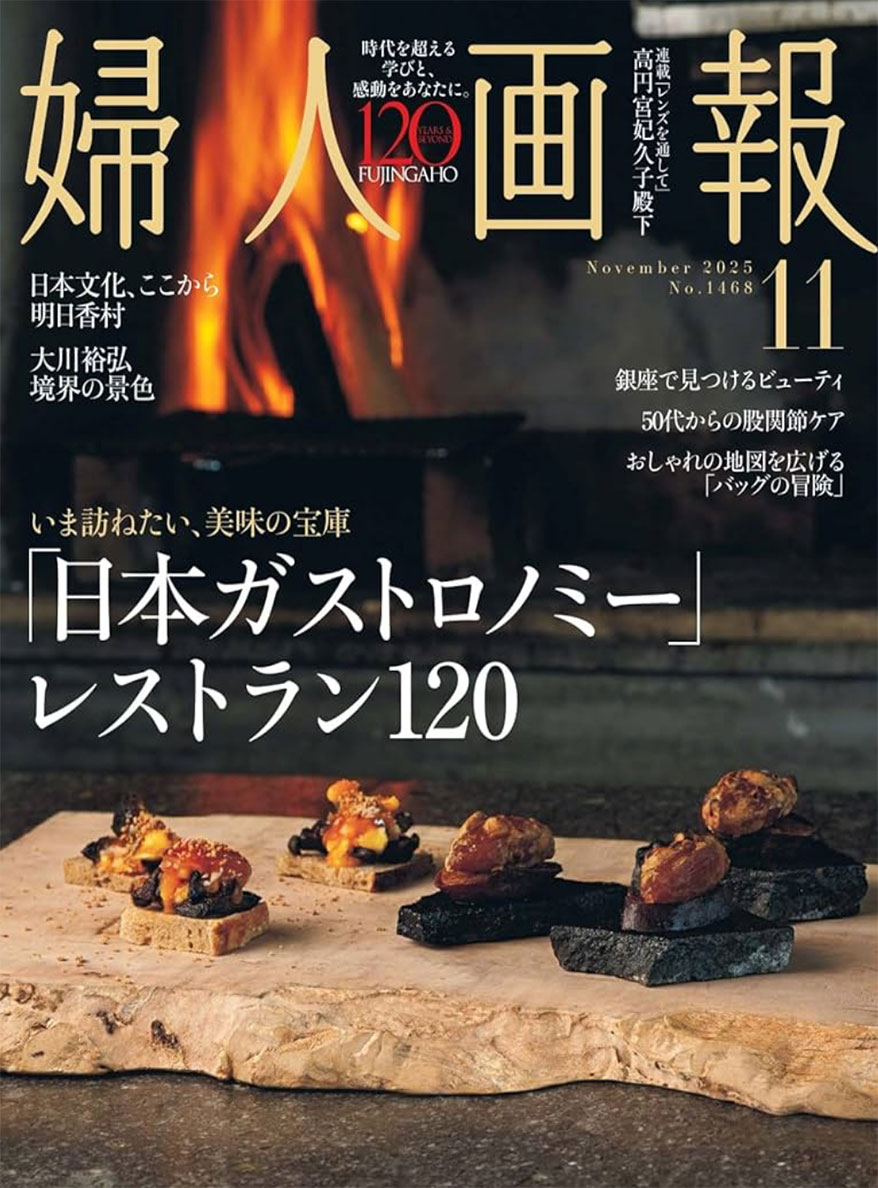 日本で最も歴史あるライフスタイル誌のひとつ[婦人画報]11月号の特集『いま訪ねたい、美味の宝庫「日本ガストロノミー」レストラン120』に掲載されました。